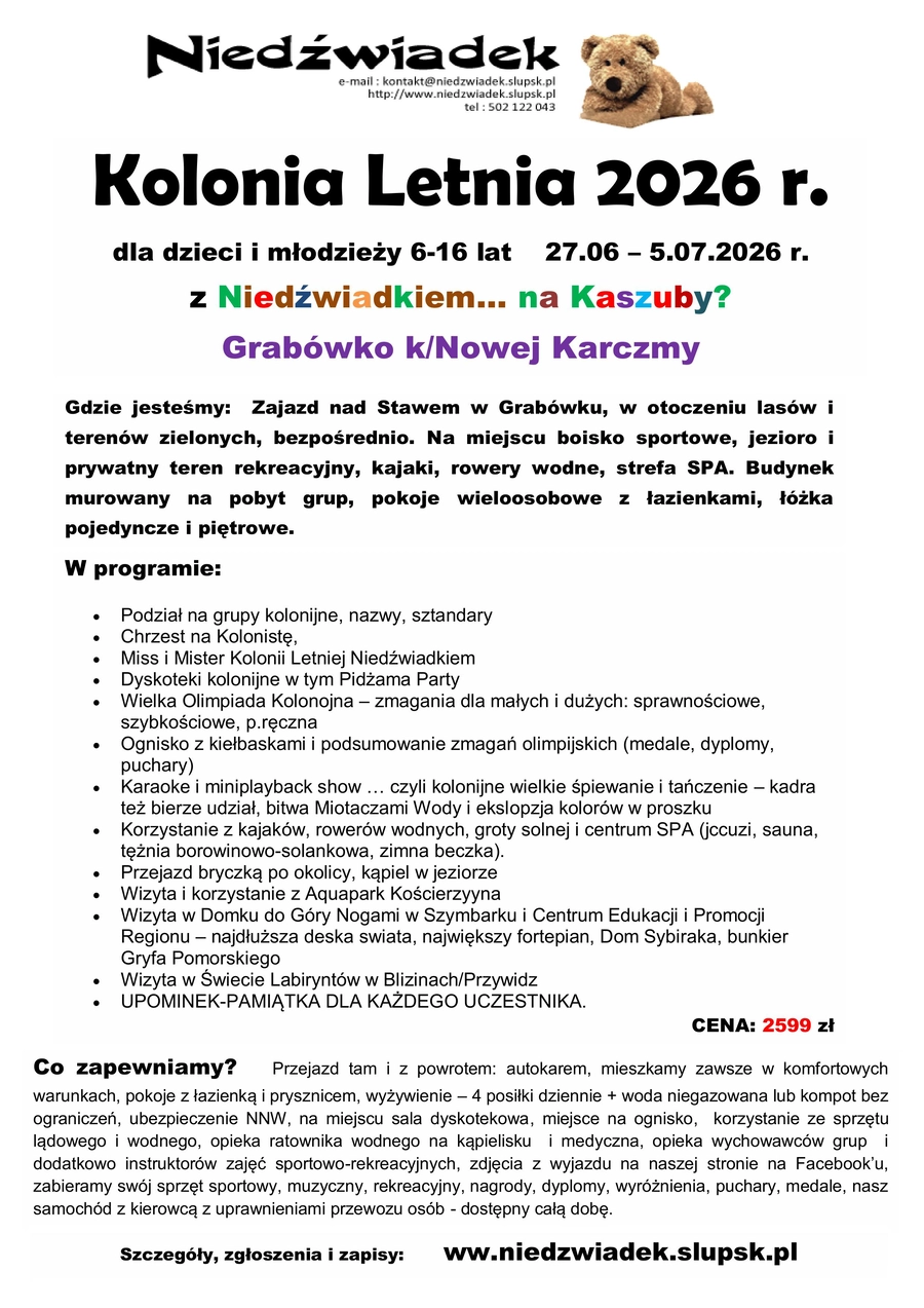 KOLONIA LETNIA Z NIEDŻWIADKIEM - KASZUBY 2026